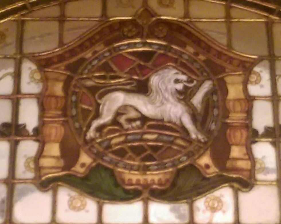 Stained glass on the door of Edinburgh’s Dominion Cinema.